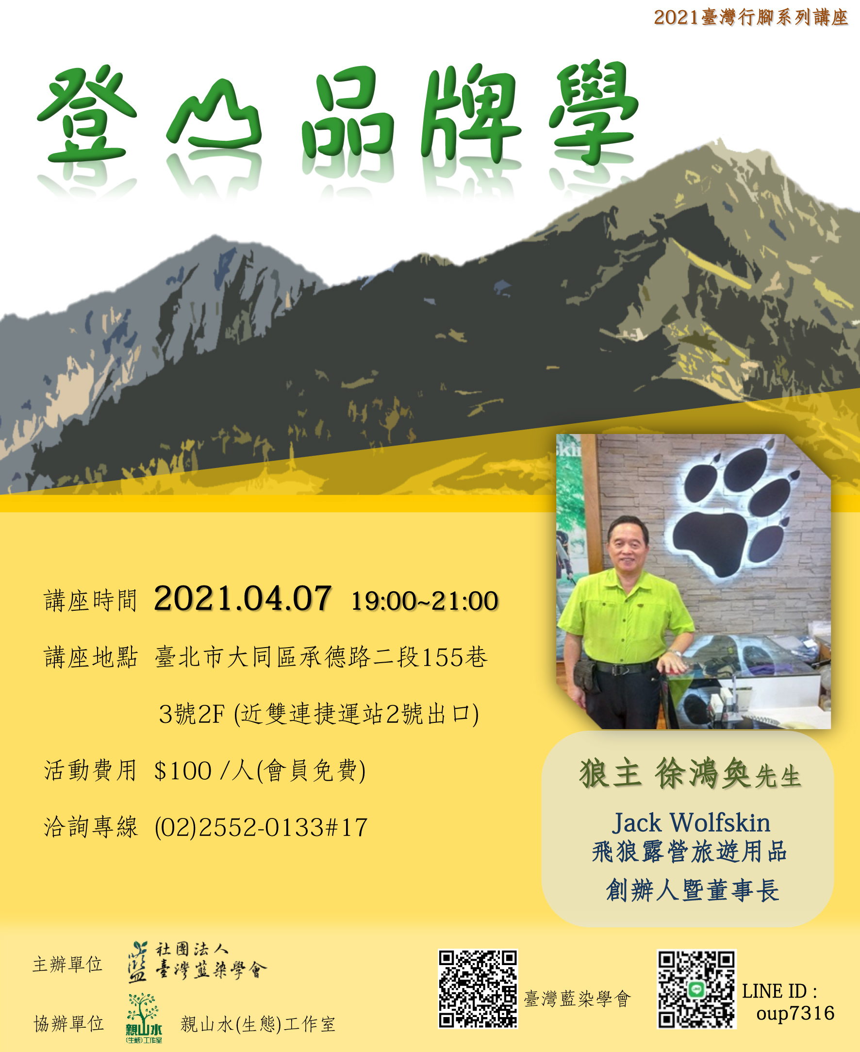 2021臺灣行腳系列講座-4/7 狼主徐鴻奐先生【登山品牌學】